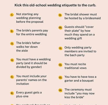 Wedding Etiquette – Proper behavior, traditions, and roles before, during, and after wedding events.